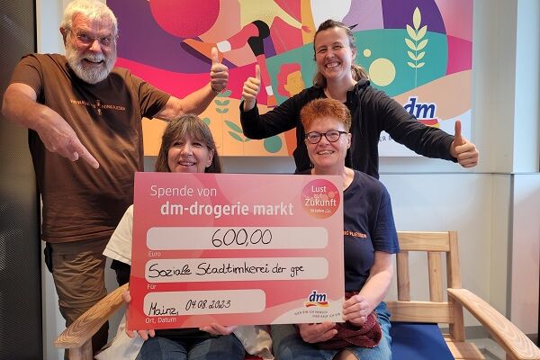 Strahlende Gesichter bei der Übergabe eines obligatorischen Riesenschecks. Im Mai waren wir zu Gast im dm Markt in der Rheinallee und durften unter dem Motto „Lust auf Zukunft“ für die Soziale Stadtimkerei werben...