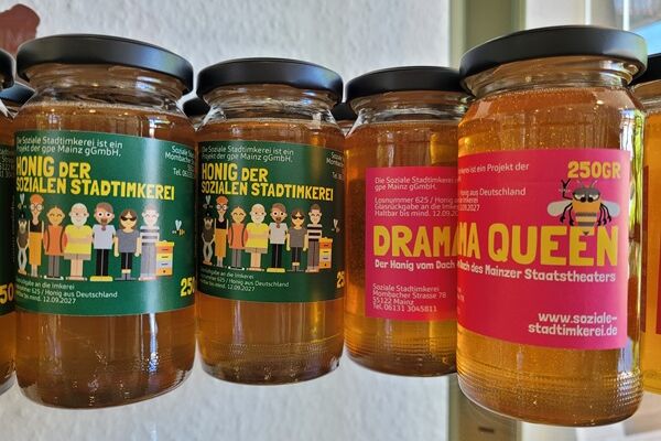 Mitten in Mainz bringt die Soziale Stadtimkerei die unterschiedlichsten Leute zusammen. Hier engagieren sich Nachbar*innen, Studierende, Rentner*innen und insbesondere Menschen, die Erfahrungen mit psychischen Belastungen haben. Gemeinsam setzen wir uns ein für den Naturschutz, pflegen Bienenvölker und Kontakte, betreiben kreative Umweltbildung für Schulen, Vereine und Institutionen und produzieren den leckersten Honig der Stadt.