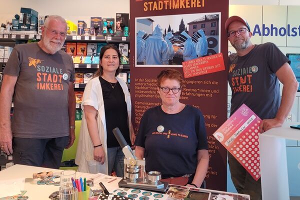 Mitten in Mainz bringt die Soziale Stadtimkerei die unterschiedlichsten Leute zusammen. Hier engagieren sich Nachbar*innen, Studierende, Rentner*innen und insbesondere Menschen, die Erfahrungen mit psychischen Belastungen haben. Gemeinsam setzen wir uns ein für den Naturschutz, pflegen Bienenvölker und Kontakte, betreiben kreative Umweltbildung für Schulen, Vereine und Institutionen und produzieren den leckersten Honig der Stadt.