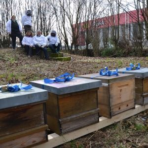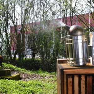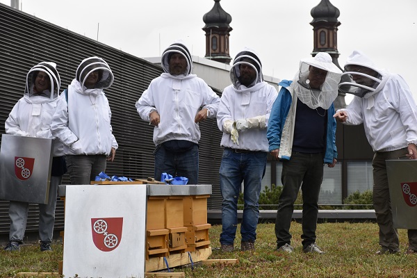 Einen ganz interessanten Bienenstand mit zwei Völkern haben wir auf dem Dach der alten Lagerhalle auf dem Gelände der Stadtwerke AG aufgebaut. Mitten in der Stadt und umgeben von großen alten Bäumen wie Akazien wird der Stadtwerke-Honig sicher ganz besonders gut schmecken.