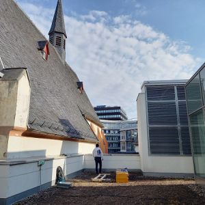 Auf der Dachterrasse einer Arztpraxis im Gesundheits- und Medizinzentrum Helix in Mainz-Bretzenheim (