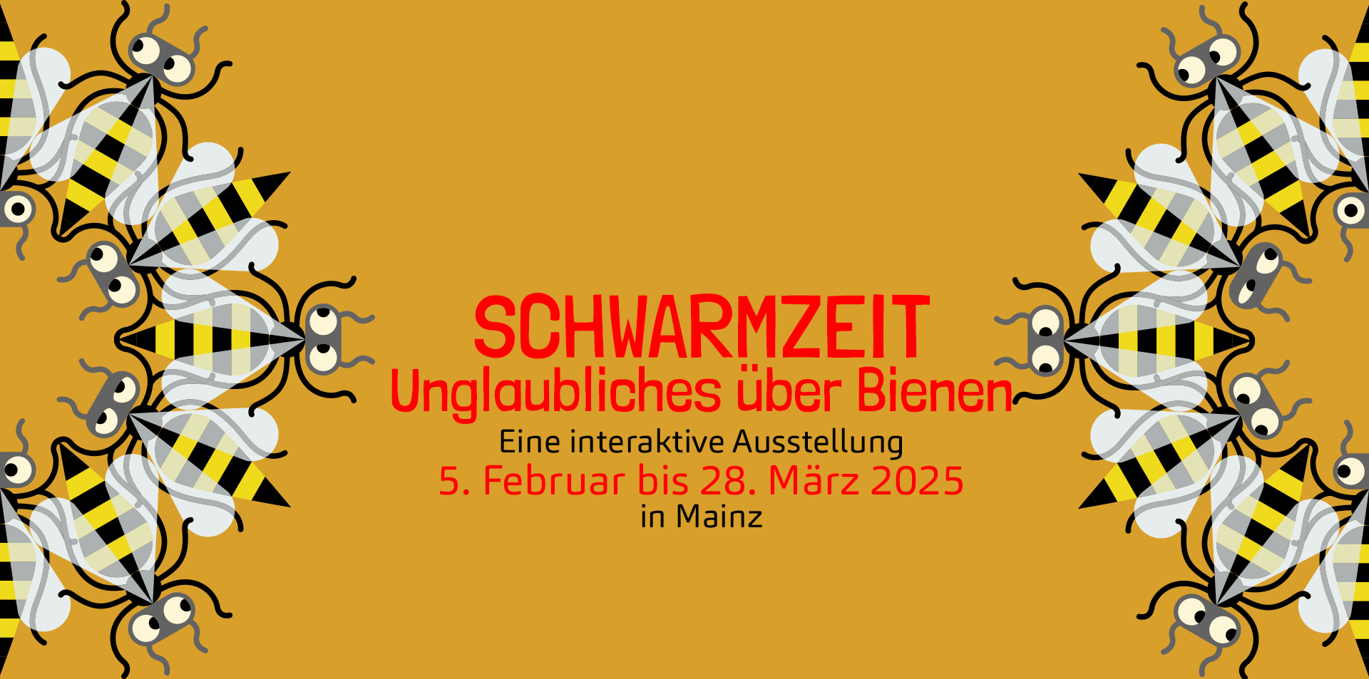 Über ein Jahr lang haben die Menschen der Sozialen Stadtimkerei Mainz mit Wissenschaftler*innen und Bienen-Expert*innen gesprochen, sich von Ausstellungen inspirieren lassen, Bienen-Modelle gebaut, bemalt, arrangiert und ganz besondere Exponate gesammelt. Nun sind sie bereit für Euch zu schwärmen. Die Ausstellung ist kostenlos. Kommt alle vorbei!