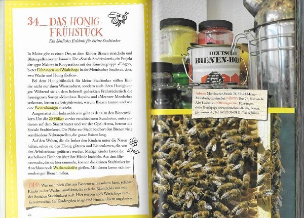 Wie klasse ist das denn? Unsere Stadtimkerei-Akteurin Charlotte hat gerade ein Buch veröffentlicht. In „111 Orte für Kinder in Mainz, die man gesehen haben muss“ lernt man unsere kleine Lieblingslandeshauptstadt nochmal von einer ganz anderen Seite kennen. Und natürlich freuen wir, dass unsrer Stadtimkerei auch eine Doppelseite gewidmet wurde. Danke, Charlotte, auch für die vielen anderen tollen Tipps!