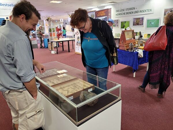 Die aktuelle Ausstellung „Das leise Sterben – heimische Bienen und Insekten“ in der Anna Seghers Bücherei möchte auf diese dramatische Entwicklung aufmerksam machen. Die Soziale Stadtimkerei ist vor Ort mit einigen Exponaten vertreten (u.a. eine Schaubeute und unser großes Honigbienen-Modell). Am vergangenen Freitag haben wir die Ausstellung besucht und konnten Neues über beispielsweise die Lebensgewohnheiten der Wildbienen lernen. Die Ausstellung ist noch bis zum 18. November geöffnet.