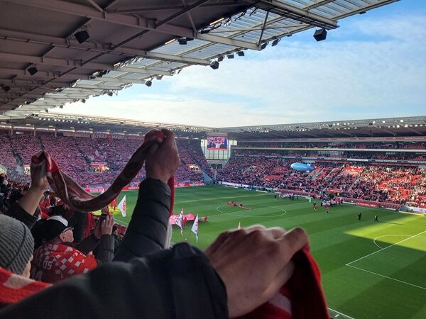 Am vergangenen Samstag ging es ausnahmsweise nicht um unsere Bienen-Ausstellung SCHWARMZEIT, die ja momentan noch bis Ende März in der Lounge der Volksbank Darmstadt Mainz läuft. Wir waren auf Einladung des 1. FSV Mainz 05 im Stadion und durften das Heimspiel gegen den FC Augsburg verfolgen. Das Spiel war eher träge, dafür war die Stimmung auf den Rängen erstklassisch, was sicher auch an den dänischen Fans hinter uns lag.