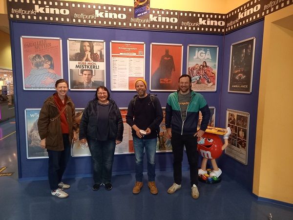 Können Bienen rülpsen? Schlafen Bienen überhaupt? Warum sterben die Drohnen nach der Paarung mit der Königin? Diese und viele andere spannende Fragen konnten wir (manchmal auch nur teilweise) im Laufe der Woche vielen hessischen Schüler*innen beantworten. Die Soziale Stadtimkerei war Gast bei den 16. Hessischen SchulKinowochen und zwar in jenen Kinos in Frankfurt und Wiesbaden, in denen der großartige Film „Tagebuch einer Biene“ von Dennis Wells gezeigt wurde. Der Film gibt faszinierende Einblicke in das Innenleben eines „Bien“ und zeigt die unglaubliche Leistung eines Bienenvolks aus aller nächster Nähe. Im Anschluss an die Vorstellungen gab es jeweils Filmgespräche und die Kinder hatten die Möglichkeit alle möglichen und gerne auch unmöglichen Fragen rund um die Bienen zu stellen. Filmpädagoge Simon Zerfass moderierte die Gespräche und wir gaben unser Bestes auch Antworten auf die vielen Fragen zu haben. Ein tolles Format und eine prima Organisation vom DFF – dem Deutschen Filminstitut und Filmmuseum in Frankfurt, dass die SchulKinowochen organisiert.