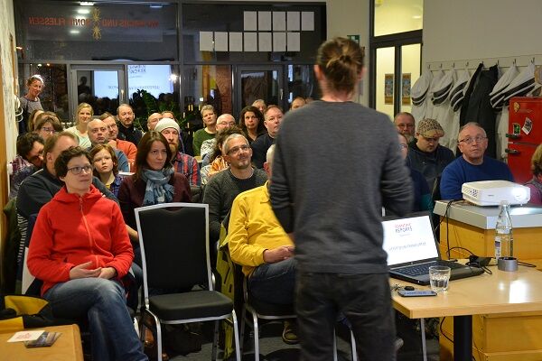 Siefert verstand es großartig wissenschaftliche Erkenntnisse und Filmsequenzen aus dem Brutnest miteinander in Beziehung zu setzen. Königinnen bei der Eiablage, die Metamorphose der Biene in der Zelle, Fütterungsverhalten, Pollenablage – all das gab es in HD Qualität zu bewundern. Das Publikum (und der Autor dieses Beitrages) sind jetzt noch völlig begeistert.