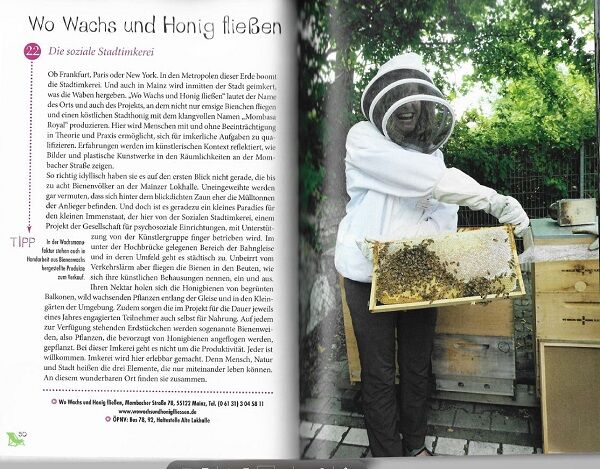 Ach, da freuen wir uns aber sehr. Die Soziale Stadtimkerei ist in Stefanie Jungs neuem Buch „Glücksorte in Mainz“ vertreten. Auf Doppelseite 50 beschreibt die Mainzer Autorin unsere kleine Imkerei wie folgt „Bei dieser Imkerei geht es nicht um die Produktivität. Jeder ist willkommen. Imkerei wird hier erlebbar gemacht. Denn Mensch, Natur und Stadt heißen die drei Elemente, die nur miteinander leben können. An diesem wunderbaren Ort finden sie zusammen.“
