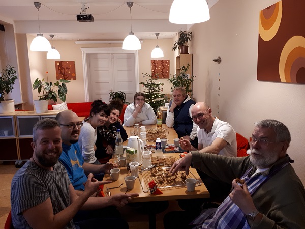 Vergangenen Montag haben wir unsere backofenfreie Zone verlassen und bei den lieben Kolleginnen und Kollegen vom Beratungscafé UNPLUGGED Unterschlupf gefunden. Das Ziel unserer Mission: Leckere Weihnachtsplätzchen zu backen und den Adventsstress hinter uns zu lassen. Unser Mombasa Royal (Honig aus der Mombacher Straße) durfte dabei selbstverständlich nicht fehlen. Wie man auf dem Foto gut erkennen kann: Mission gelungen!