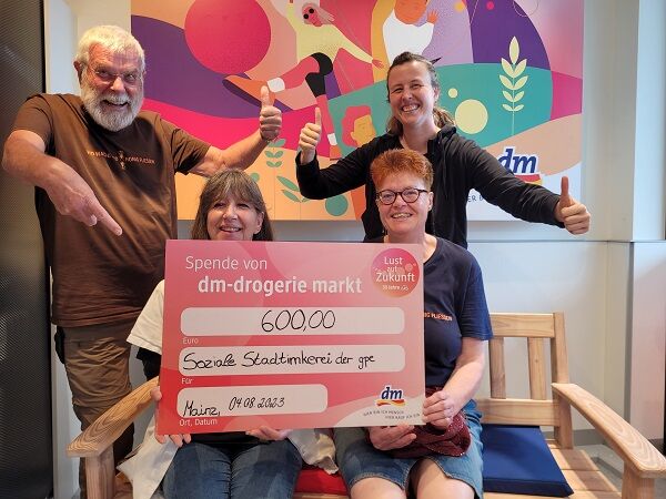 Strahlende Gesichter bei der Übergabe eines obligatorischen Riesenschecks. Im Mai waren wir zu Gast im dm Markt in der Rheinallee und durften unter dem Motto „Lust auf Zukunft“ für die Soziale Stadtimkerei werben. dm-Kund*innen konnten dabei für verschiedene Projekte abstimmen und tatsächlich konnten wir uns an die Spitze absetzen. 600€ hat dm mittlerweile der Stadtimkerei überwiesen – wir freuen uns mächtig darüber. Ganz lieben Dank an die dm-Marktleiterin Michaela Riedel und Ihr ganzes Team für die tolle und herzliche Unterstützung!