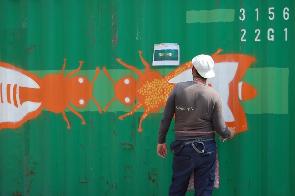Seit einigen Wochen ist die „Doppelbiene“ – unser Projektlogo – auch auf einem Container im hinteren Bereich der Mombacher Straße 78 zu finden. Die Idee zur Gestaltung stammte von unseren Kolleginnen und Kollegen von BUNT&bündig, der Kunstwerkstatt der gpe. Der bis dato eher unscheinbare Frachtcontainer verwandelte sich Ende Juni bei heißesten Temperaturen in ein echtes Unikat. Ganz lieben Dank an Frau Treitz, Herrn Siedler und Herrn Holzing.