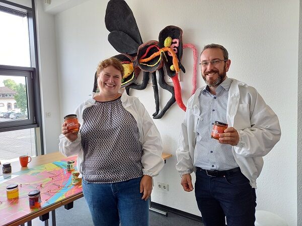 Naja, also fast alles. Am gestrigen Montag, den 24.08. konnten wir die Gewinner des diesjährigen Namenswettbewerbes „Honig Stadthaus / Große Bleiche“ in unseren Räumen begrüßen. Christina und Martin Bauer sind die geistigen Schöpfer des Namens „GRAND MAYENCE“. Ihr Name konnte sich auf einer langen Liste von über 250 Namensvorschlägen an die Spitze setzen. Nach einer exklusiven Führung durch die Stadtimkerei mit Blick in die Bienenvölker wurden Honige aus der ganzen Welt verkostet. Vom französischen Lavendelblütenhonig bis zum neuseeländischen Manukahonig, ein Honig hatte es dem Ehepaar besonders angetan. Wie könnte es auch anders sein: der GRAND MAYENCE vom Dach des Mainzer Stadthauses.