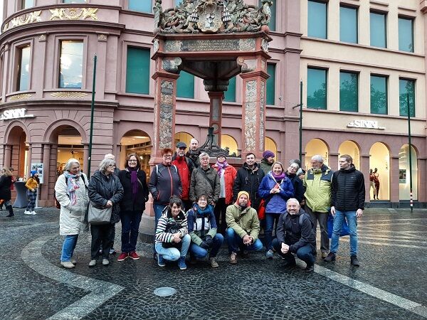 Diese Frau hat nicht nur Ahnung von Bienen, auch in unserer Stadtgeschichte kennt sie sich bestens aus: Katrin Kranz aus unserer Stadtimkerei ist seit Sommer (offizielle) Gästeführerin der Stadt Mainz und bot unseren Akteuren am vergangenen Wochenende einen tiefen und unterhaltsamen Einblick in 2.000 Jahre Mainzer Stadtgeschichte. Angefangen bei den Römern, über die französische Besatzung (Napoleon war übrigens 6-mal in unserer Landeshauptstadt) bis zur aktuellen Oberbürgermeisterwahl – Katrin schlug mit Leichtigkeit die Brücke. Besonders in Erinnerung blieb Heinrich von Meissen, genannt Frauenlob, der für seinen lieblichen Minnegesang damals schon sehr berühmt war und der Legende nach von trauernden Jungfrauen im Mainzer Dom zu Grabe getragen wurde. Wer kann schon sowas von sich behaupten?